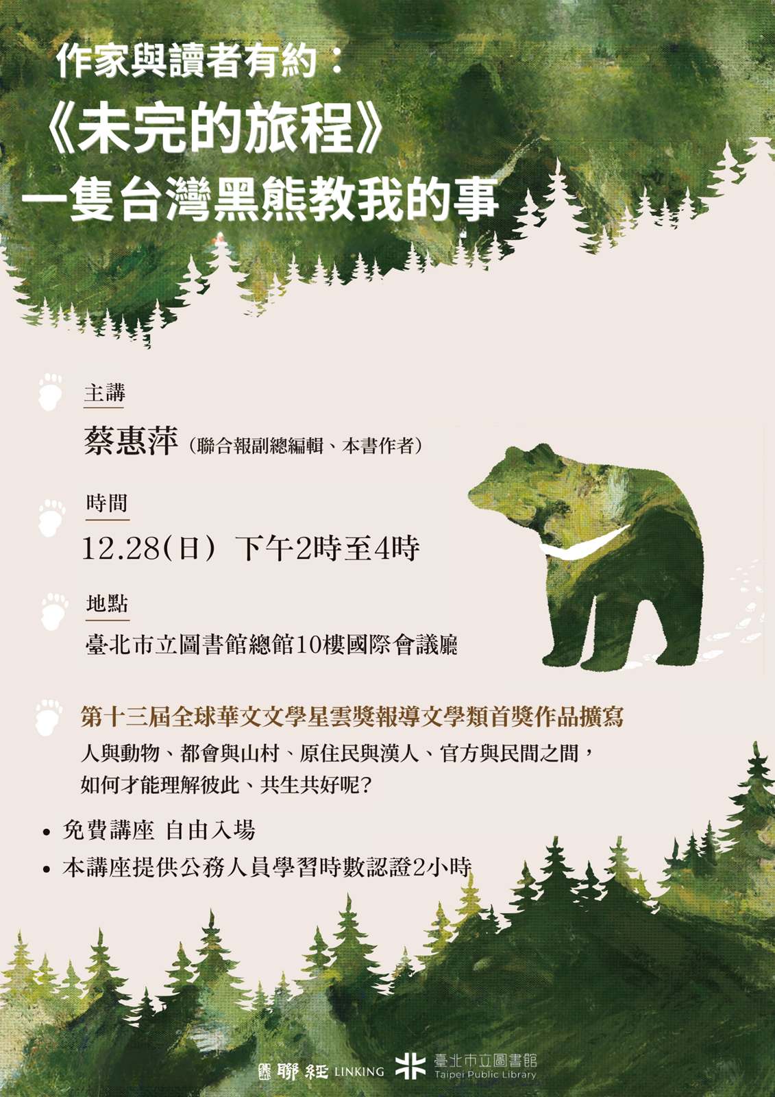 作家與讀者有約講座「《未完成的旅程》:一隻台 灣黑熊教我的事」
